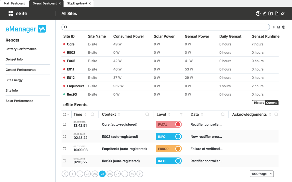 Flexenclosure eManager, built on the Iotellect platform, is a cloud-based power management system designed for telecom site networks. It enables proactive monitoring, faster response, and long-term optimization. Integrated with eSites, the system collects over 100 key metrics per site, including power load, battery health, and generator runtime, offering detailed operational visibility.